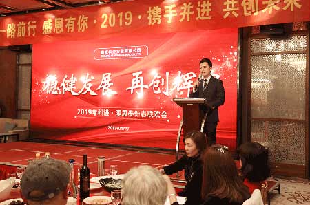 然后澳思泰總經理俞政濤發(fā)表新年致辭,他說,2018年公司取得了驕人的業(yè)績,總銷售收入和利稅增長超過30%,共取得19項知識產權,企業(yè)管理水平進一步提升,他代表公司感謝全體員工、家屬和各界朋友!2019年公司要加大技術創(chuàng)新力度,以滿足用戶需求為目標,加強內部管理,“穩(wěn)健發(fā)展,再創(chuàng)輝煌”。隨后他宣布:聯歡晚會正式開始!