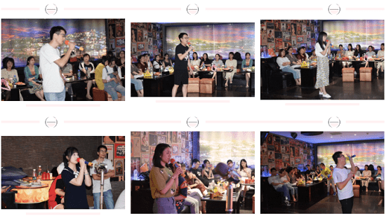 在自由歡唱的環(huán)節(jié)過(guò)后,我們迎來(lái)了本次活動(dòng)的重頭戲——K歌比賽。17位參賽選手依次放聲高歌,他們憑借各具特色的聲線(xiàn),各具風(fēng)格的演唱,征服了在場(chǎng)的所有聽(tīng)眾,一陣陣的掌聲雷動(dòng),將現(xiàn)場(chǎng)氣氛推向高潮。