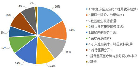 調(diào)查結(jié)果顯示,占比前三位的依次是:非急診全面預(yù)約掛號(hào)就診模式(16%)、增加養(yǎng)老服務(wù)供給(14%)及社區(qū)醫(yī)生家庭管理(12%)。此外,醫(yī)聯(lián)體建設(shè)及分級(jí)診療”“建立社區(qū)康復(fù)服務(wù)模式”“醫(yī)療資源疏解推行醫(yī)藥分開等醫(yī)改措施同樣受到網(wǎng)民關(guān)注,占比均達(dá)到10%以上。分析認(rèn)為,從網(wǎng)民關(guān)注內(nèi)容可以反映出,預(yù)約就診模式、增加養(yǎng)老服務(wù)供給等醫(yī)改措施得到較多網(wǎng)民認(rèn)可。